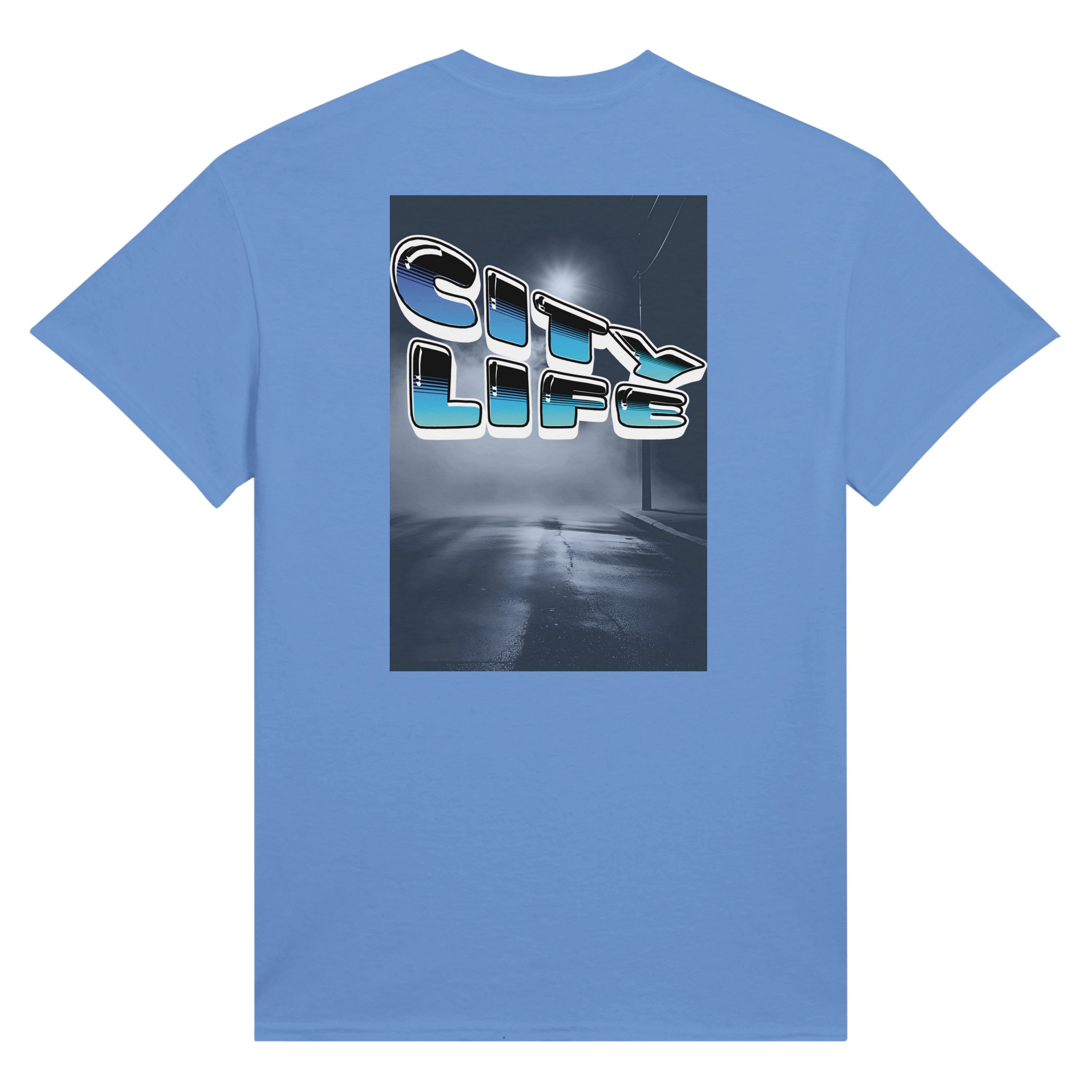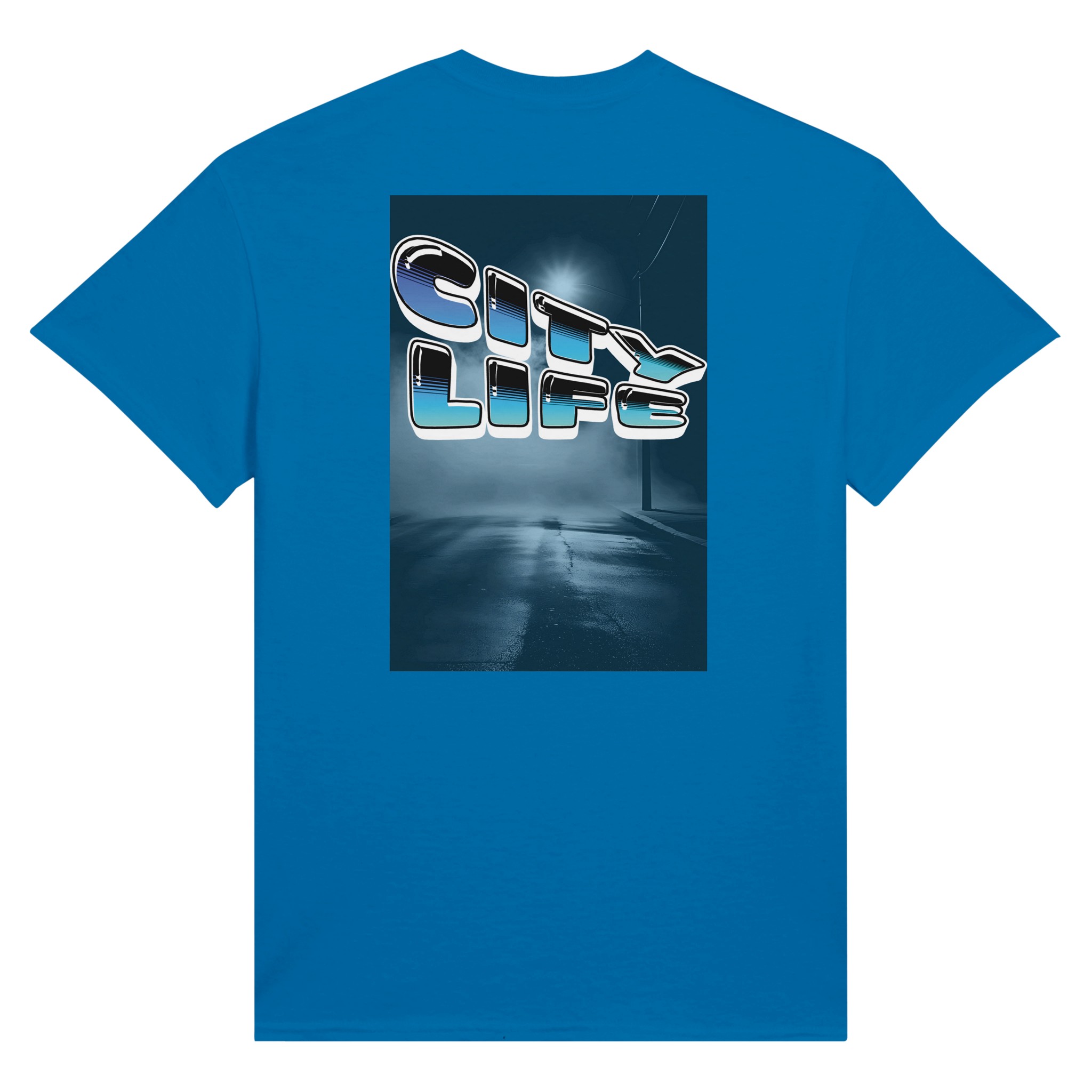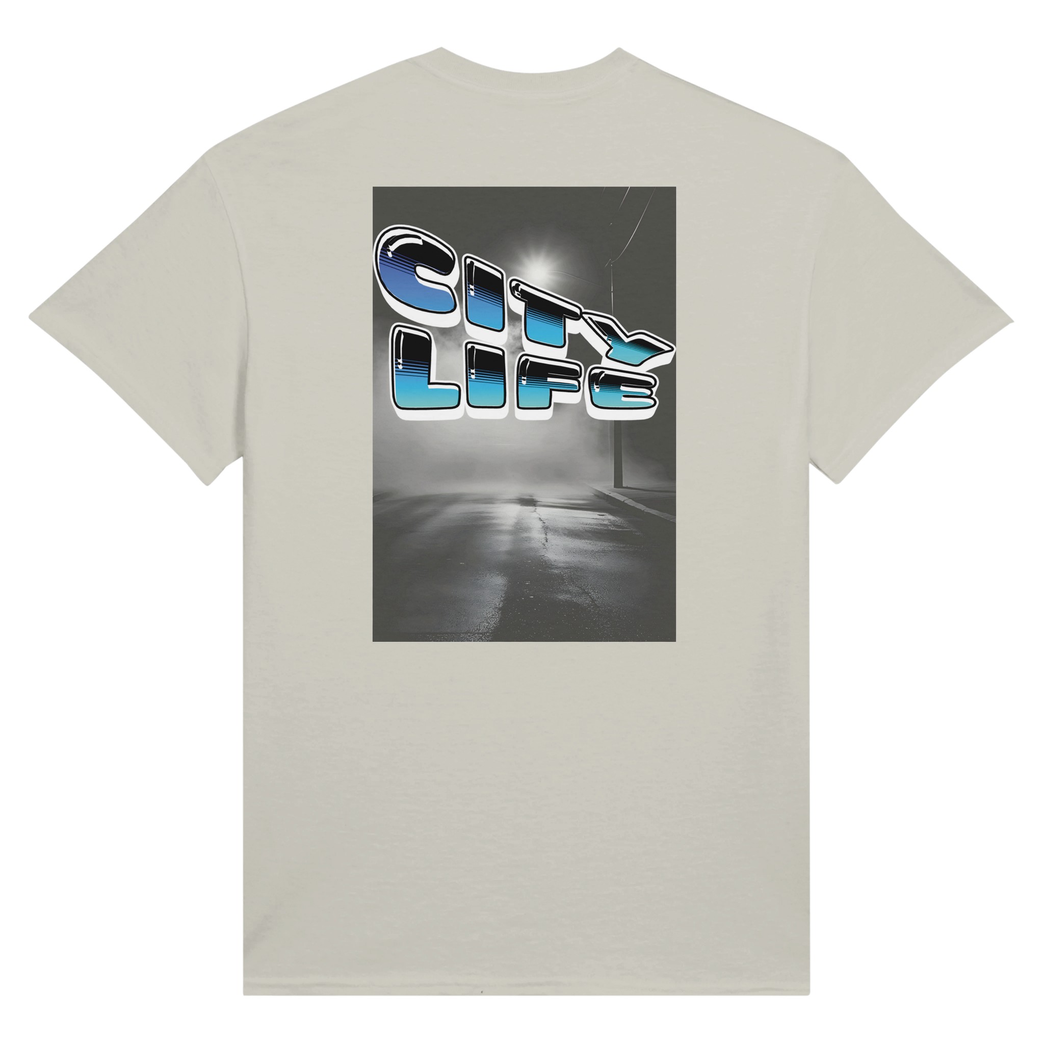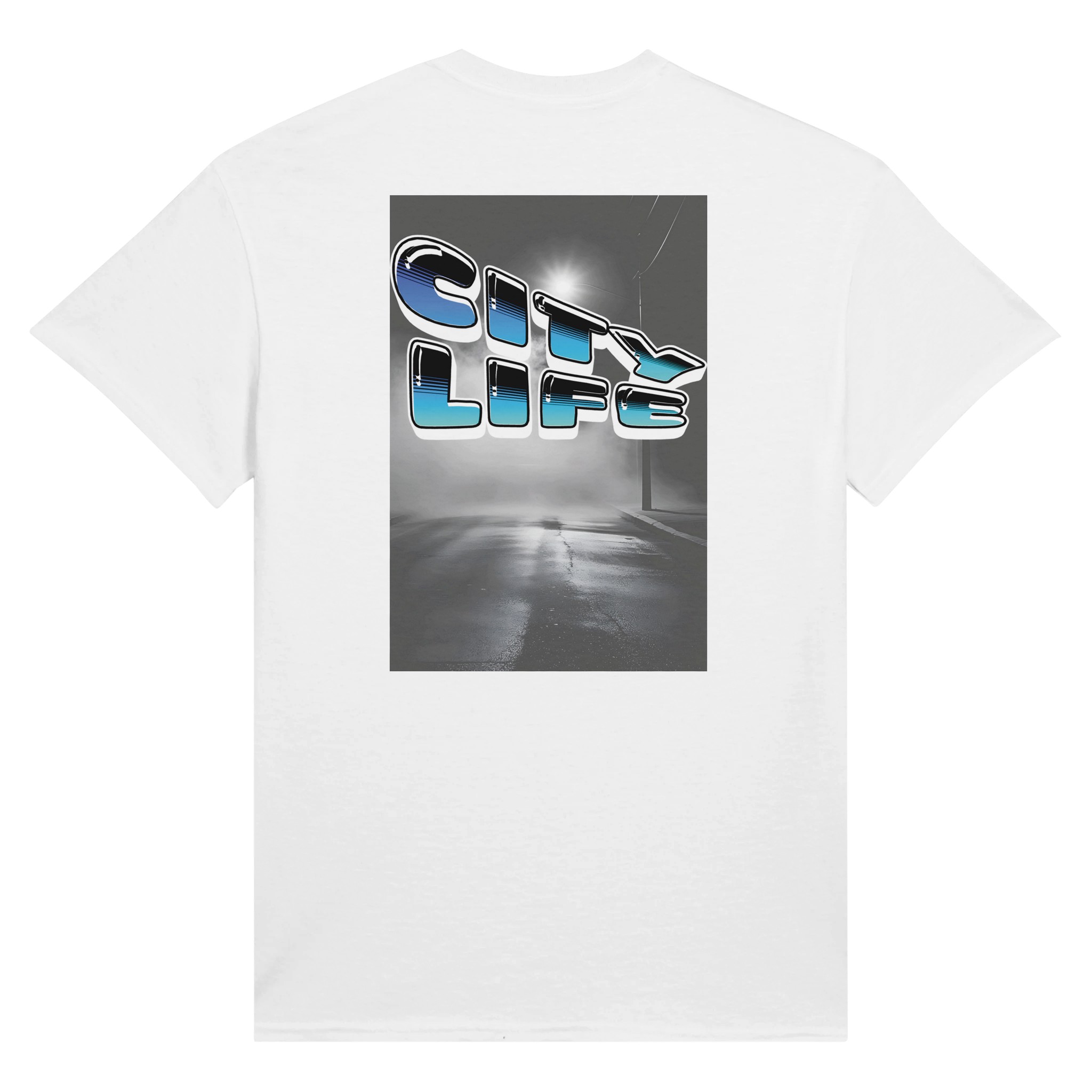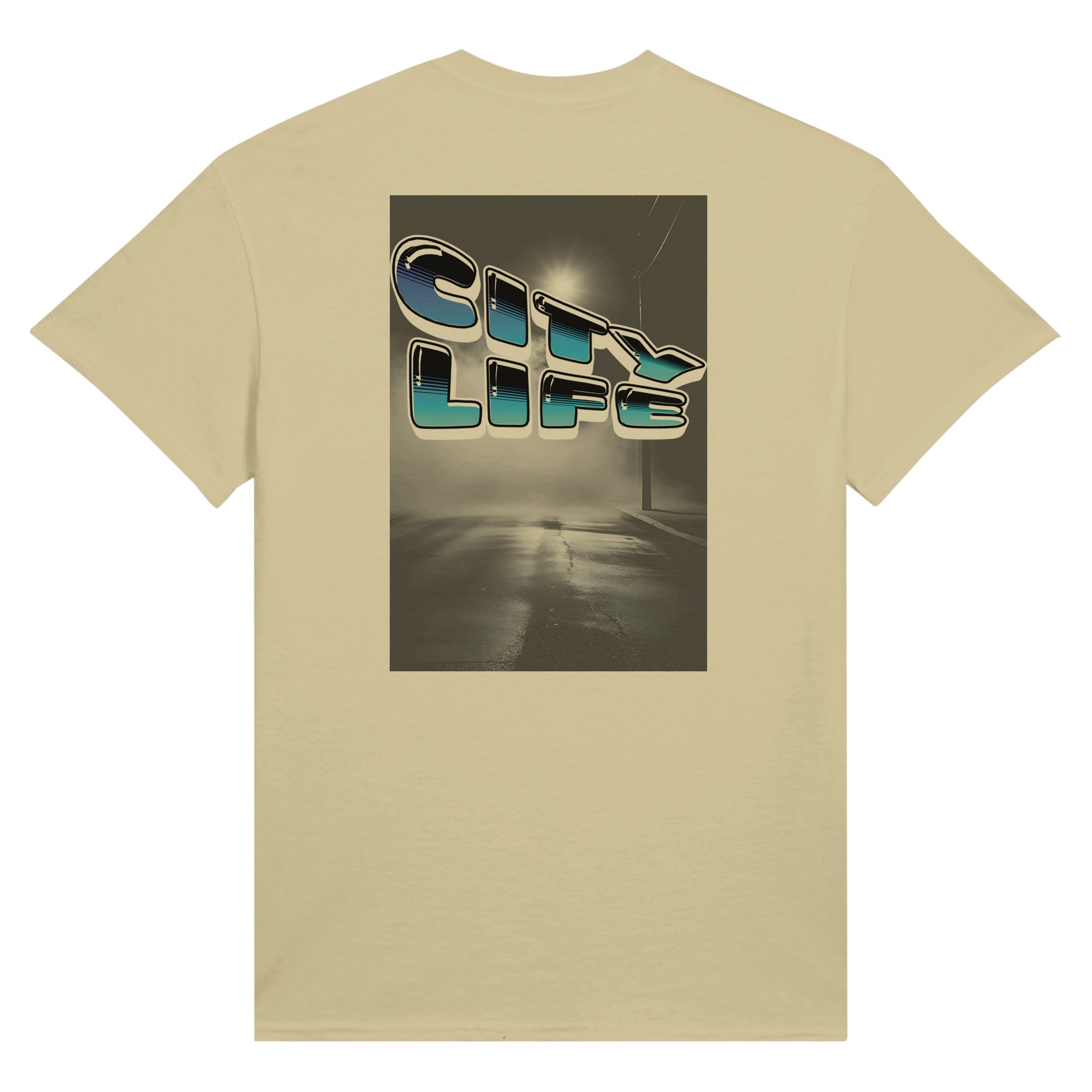 Retro 80s Typography mit „City Life“ Schriftzug in Neon Cyan-Blue Gradient. Urbaner Street-Style mit Vaporwave-inspirierter Aesthetik.