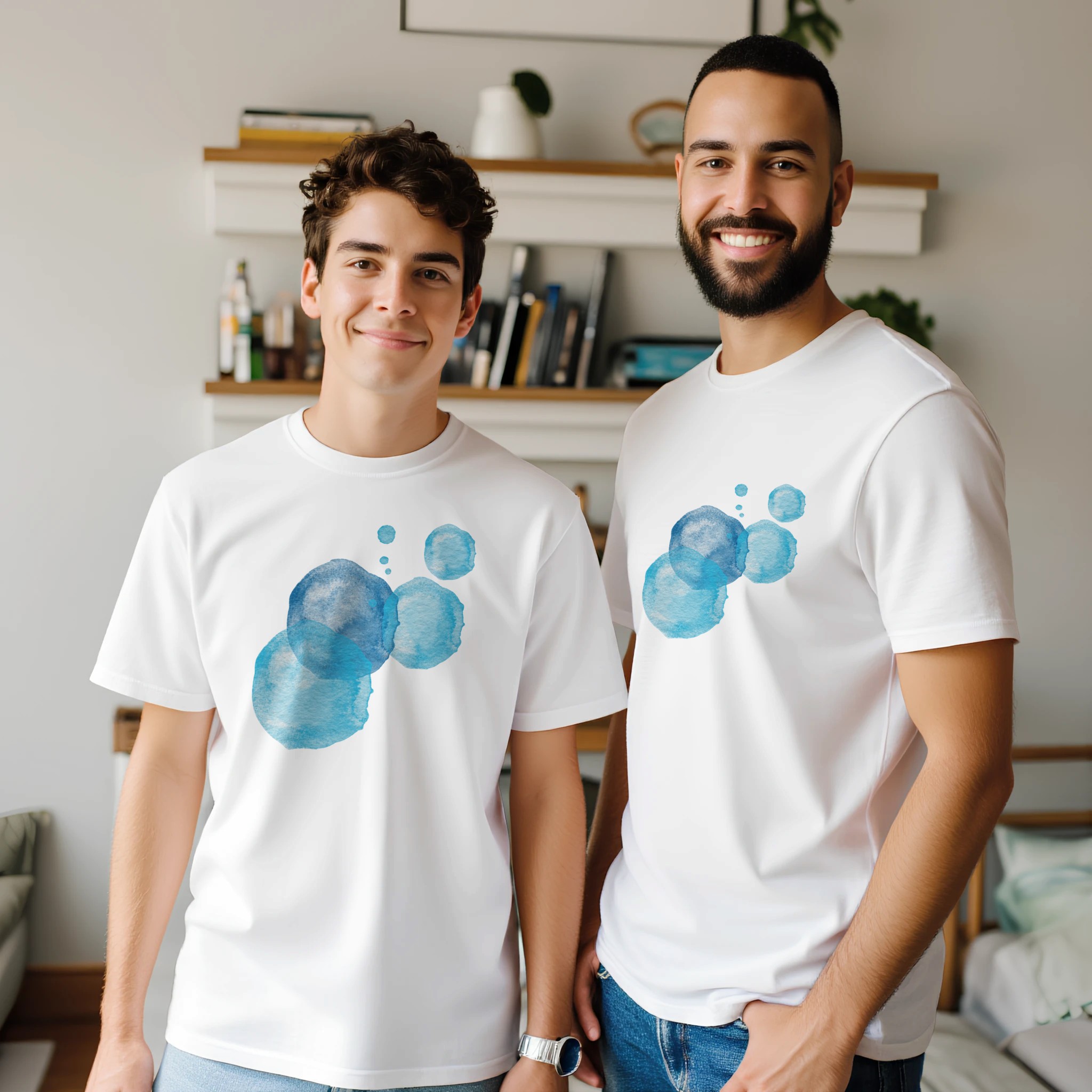Premium Unisex T-Shirt Watercolor Blue Circles